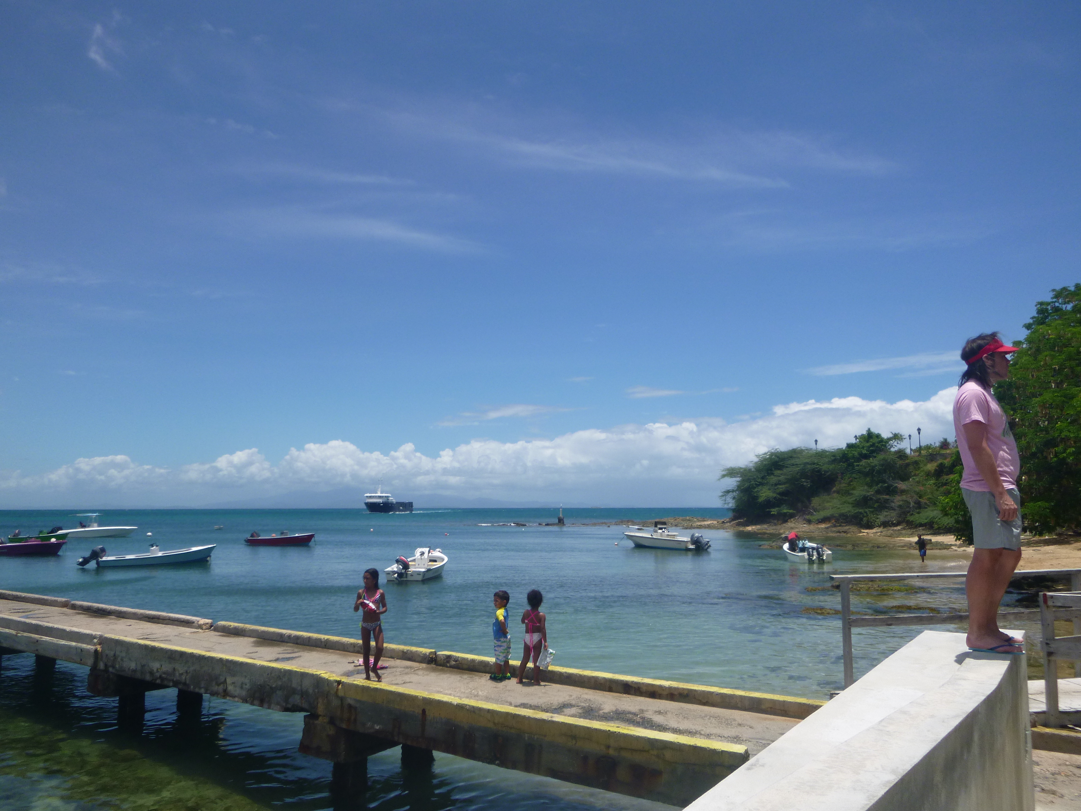 Perhaps the best beach on the island, La Chiva (Blue Beach), is closed for at least six months because they’ve found unexploded bombs in and around the little cayo just offshore. This was a big disappointment, but we did hit a variety of other beaches: Sombe (or Sun Bay), Caracas (Red Beach), Navio, Media Luna, Punta Arenas (Green Beach), and the Rompeolas (the old Navy pier on the north side of the island).